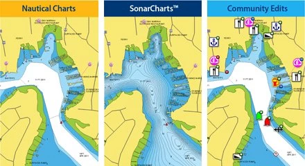 navaids, spot soundings, port plans, port service guides - SonarCharts and Community edits